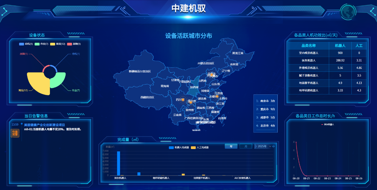 3)全要素协同:实时采集人工工效、机器人工效、材料消耗、环境数据等,构建企业级施工数据库,让资源调度更精准、更高效。