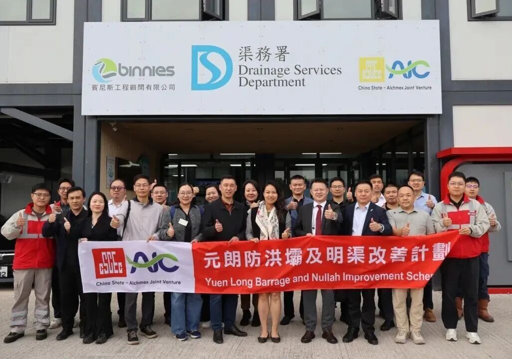 当天下午,与会代表们前往元朗防洪坝工程现场开展实地观摩。该项目作为香港渠务署在北部都会区推进的首个大型基建工程,全面采用NEC4 Option C合约模式,由中建国际旗下公司中建香港承建。项目集成中建国际集团C-SMART智慧工地系统、数字孪生、自动化监测与低碳建材等多项关键技术,致力于实现防潮排涝、水质提升及“河畔城市”示范目标。观摩结束后,与会代表前往香港建筑科技研究院举行座谈交流会,围绕深港智能建造协同发展与技术创新展开务实对话。